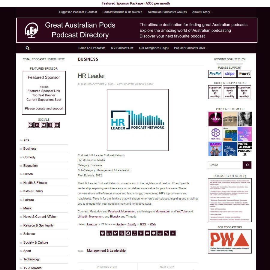 Great Australian Pods Podcast Directory: https://www.greataustralianpods.com/hr-leader/