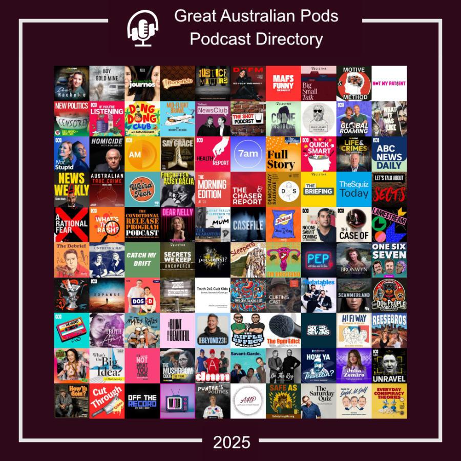 These were the 100 most popular podcasts on Great Australian Pods in 2025. These podcast entries piqued the most visitor interest and attracted the greatest number of page views.