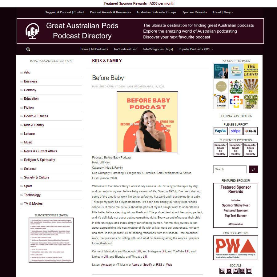 Great Australian Pods Podcast Directory: https://www.greataustralianpods.com/before