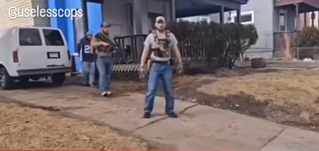 Armed fascist paramilitary invaders, pulling guns on TWO U.S. citizens, while refusing to show a warrant as they abduct some one. (Minneapolis, MN - date unknown)