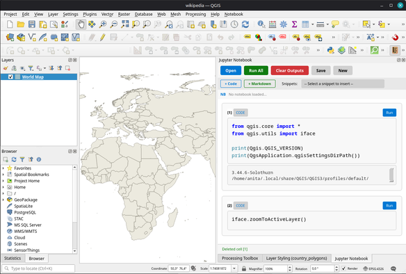 Finally it's here: Jupyter notebooks inside QGIS. I don't know about you but I've been hoping for someone to get around to doing this for quite a while.
