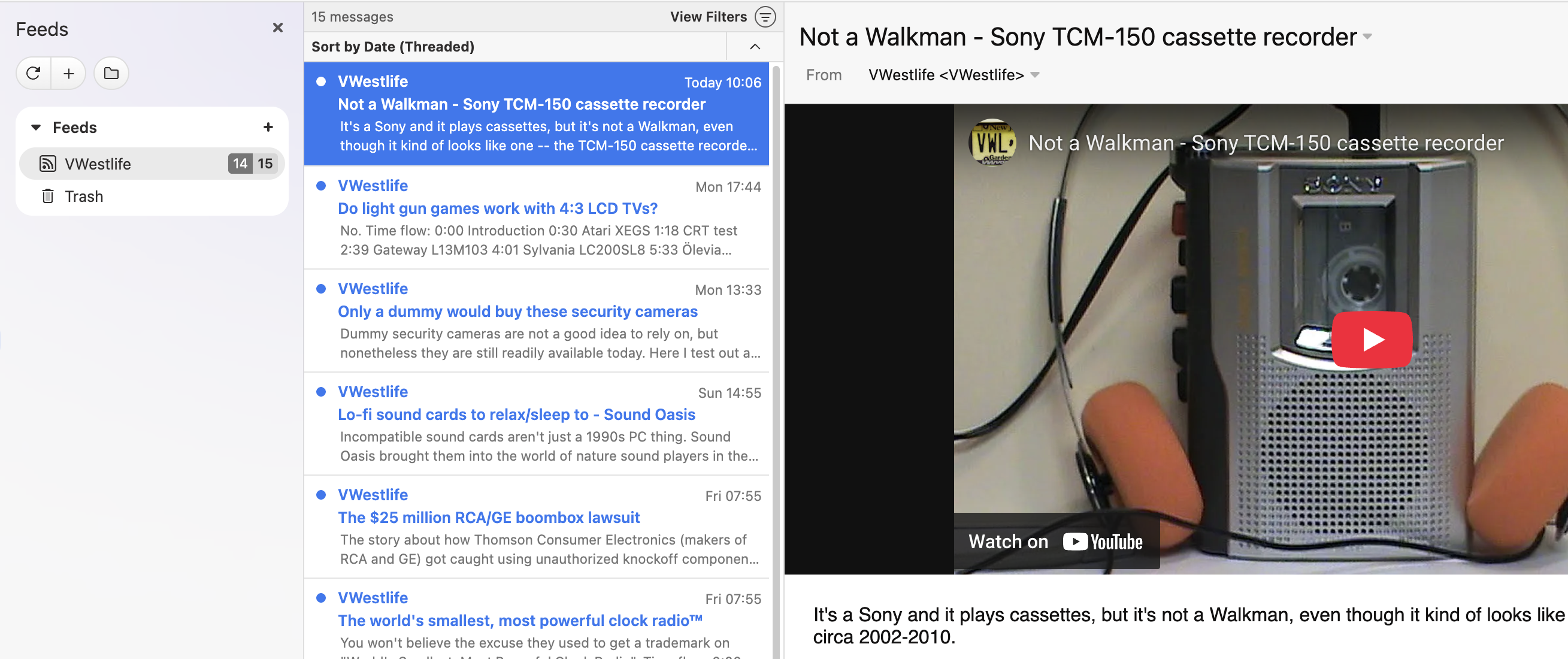 bulletty is a TUI feed reader (RSS and ATOM). Read your subscriptions within your terminal. It downloads the entries for offline reading so all the data is local and yours: your subscriptions, highlights, comments, etc. All in an universal format: Markdown. Backup and sync your data directory your own way.