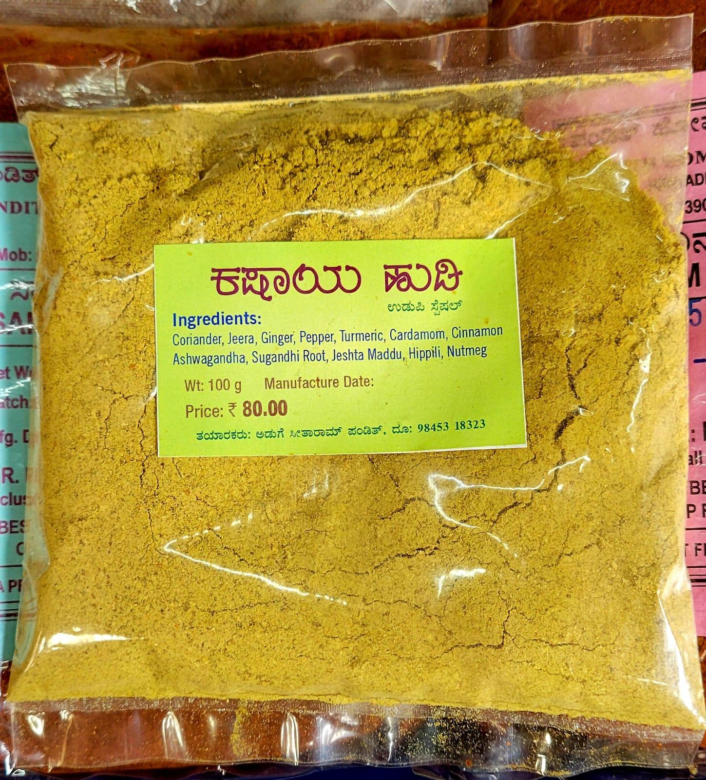 Pic: kashaaya powder at a store in #Udupi #India. Add a teaspoon to warm milk/water.