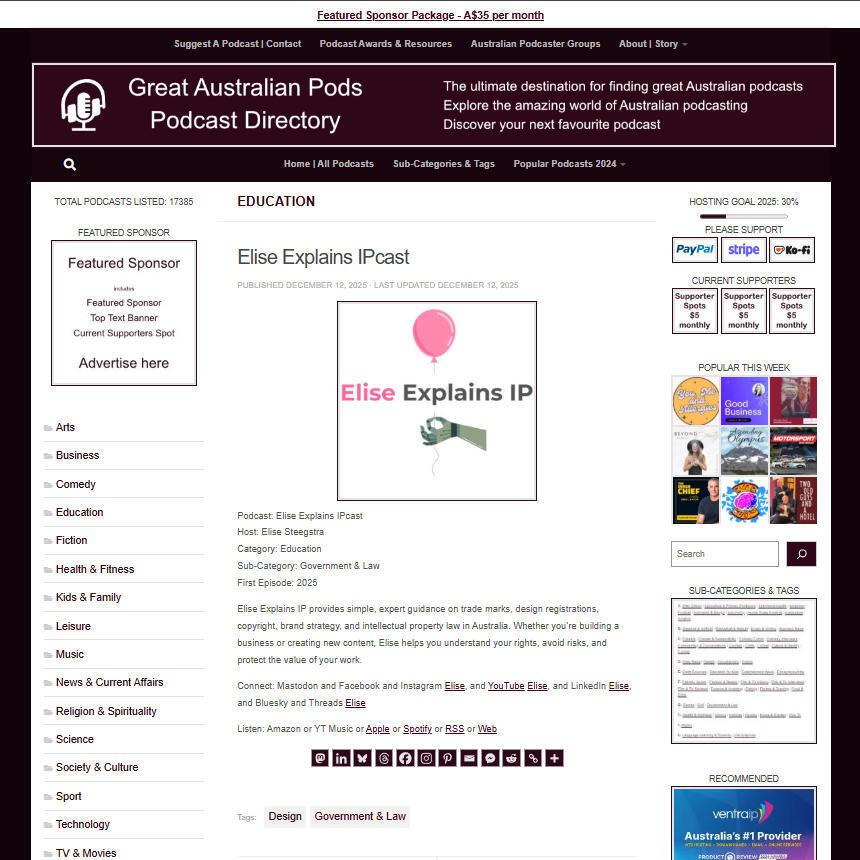 Great Australian Pods Podcast Directory: https://www.greataustralianpods.com/elise-explains-ipcast/