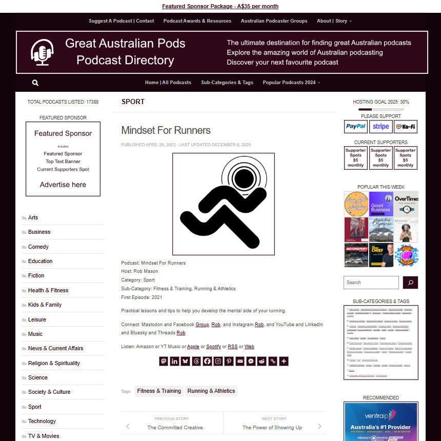 Great Australian Pods Podcast Directory: https://www.greataustralianpods.com/mindset-for-runners/