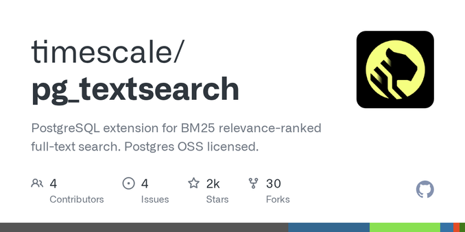 pg_textsearch: PostgreSQL extension for BM25 relevance-ranked full-text search.