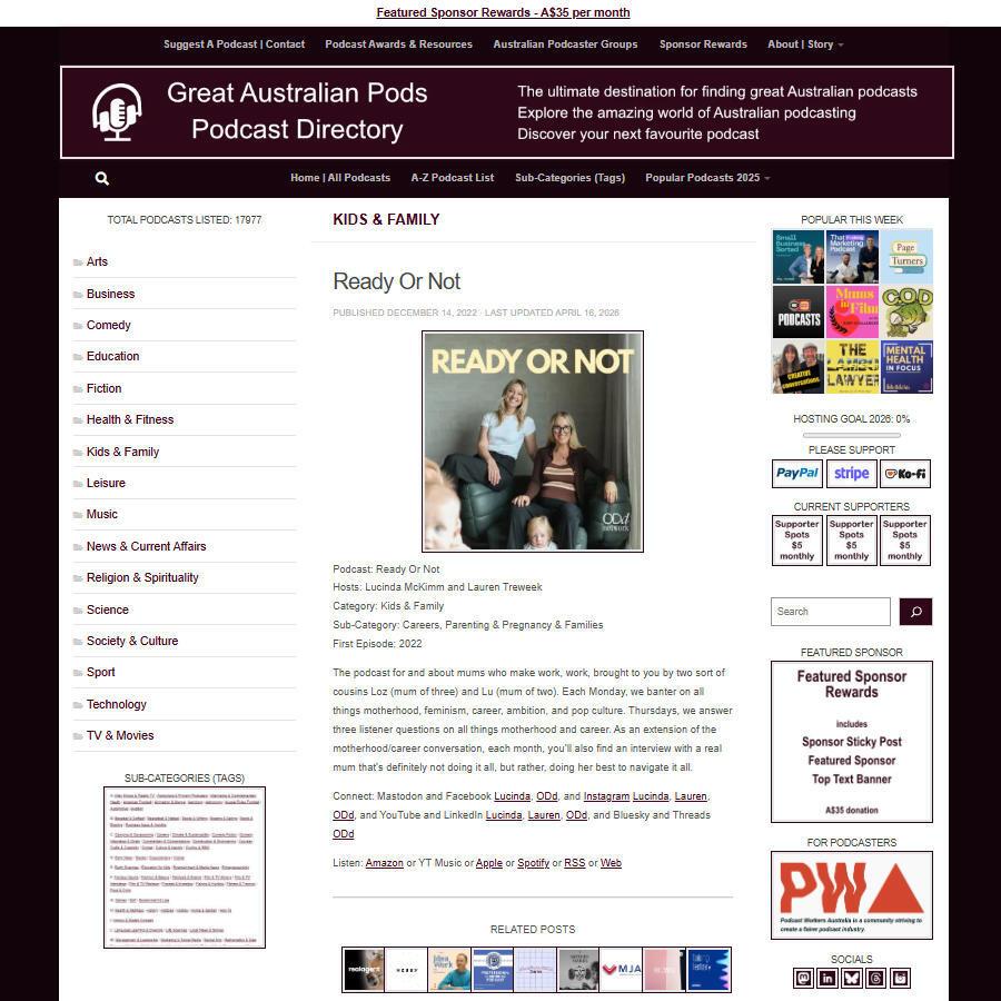 Great Australian Pods Podcast Directory: https://www.greataustralianpods.com/ready-or-not/