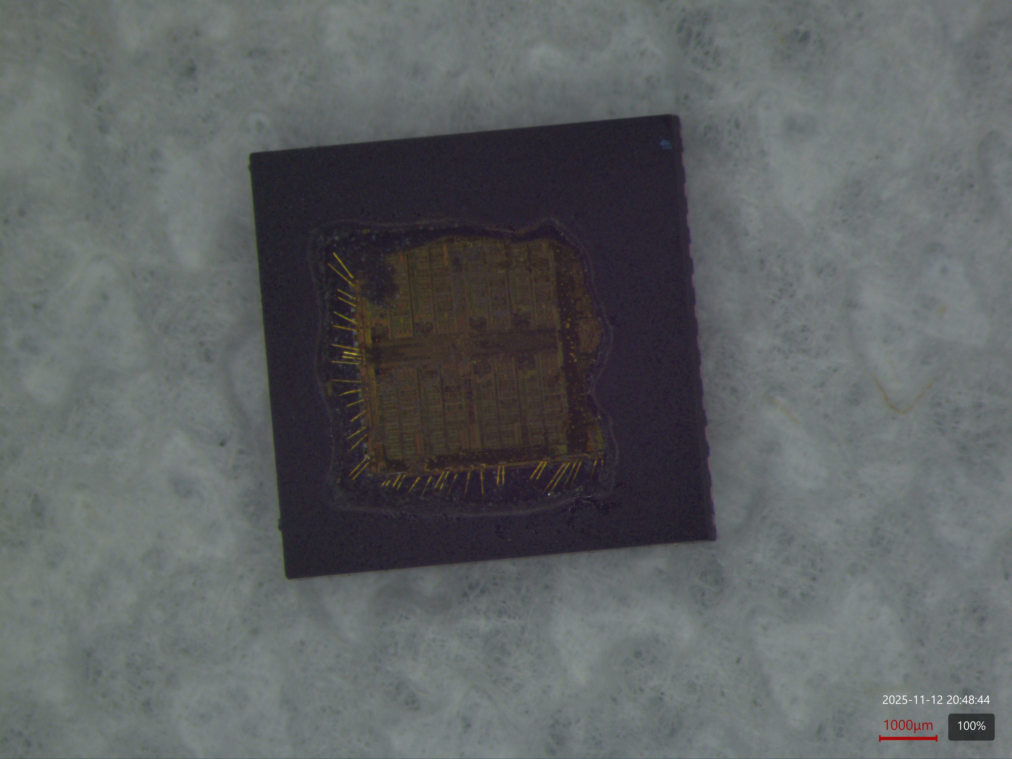 This is sample 6A1 after initial partial decap. It's still covered in the north and easy because I guessed how big the die would be and apparently underestimated its size.