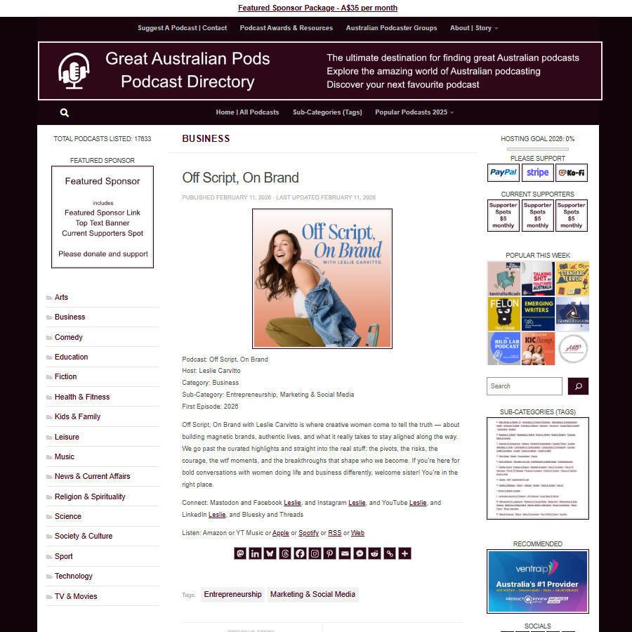 Great Australian Pods Podcast Directory: https://www.greataustralianpods.com/off-script-on-brand/