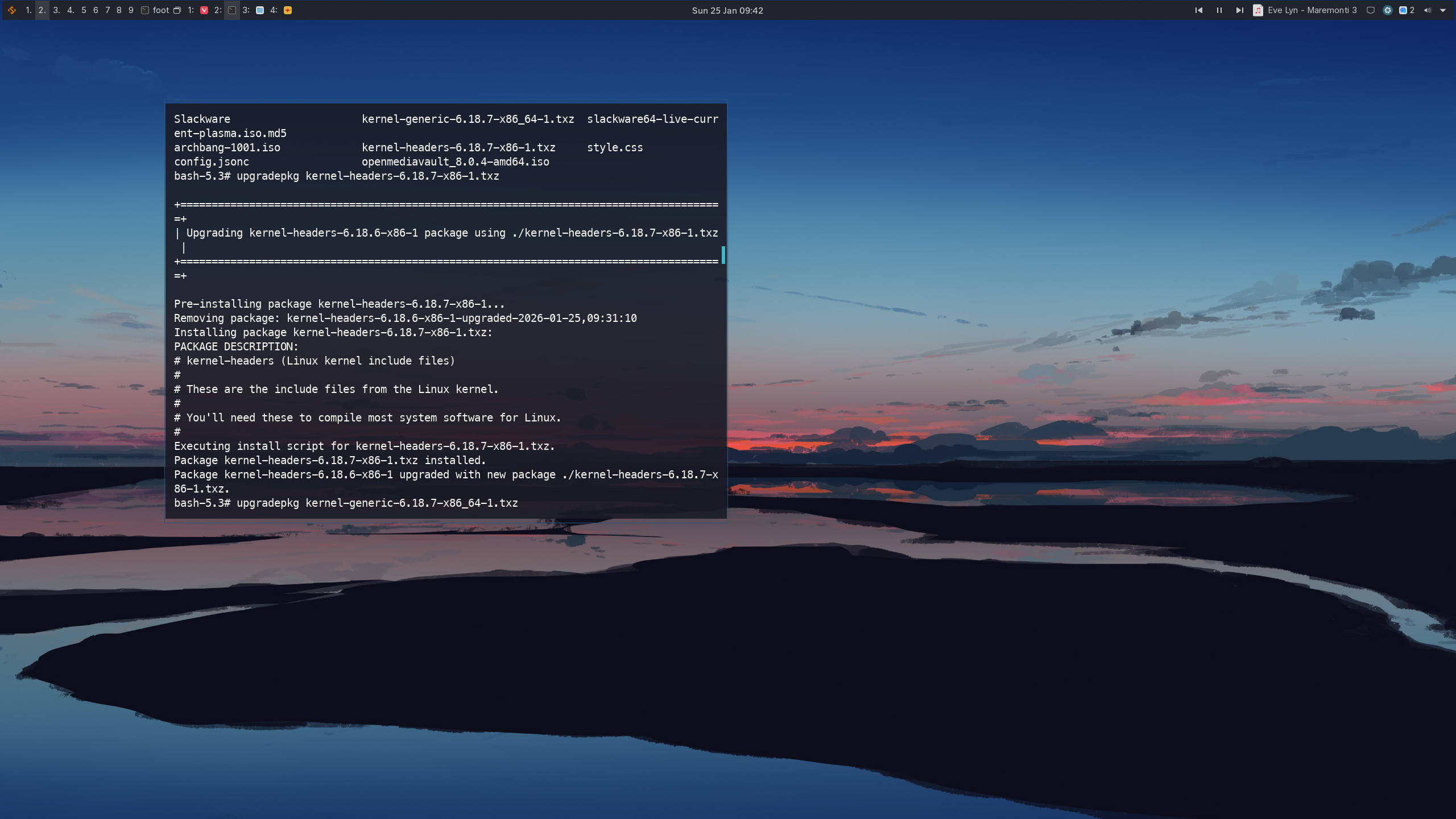In all excitement et all I tend to forget how solid nwg-shell on Sway actually is. All frills if you want them, it just works. Foot as terminal is making a strong comeback also. Slackware Tilers has been my main home for 40 days now. Ain't leaving anytime soon.