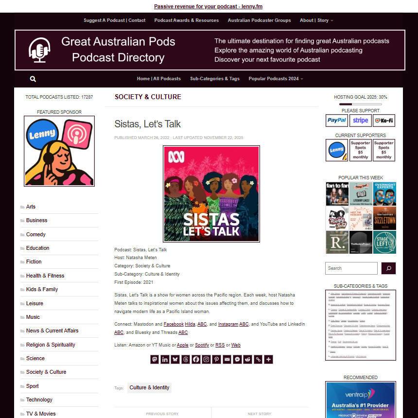 Great Australian Pods Podcast Directory: https://www.greataustralianpods.com/sistas-lets-t…