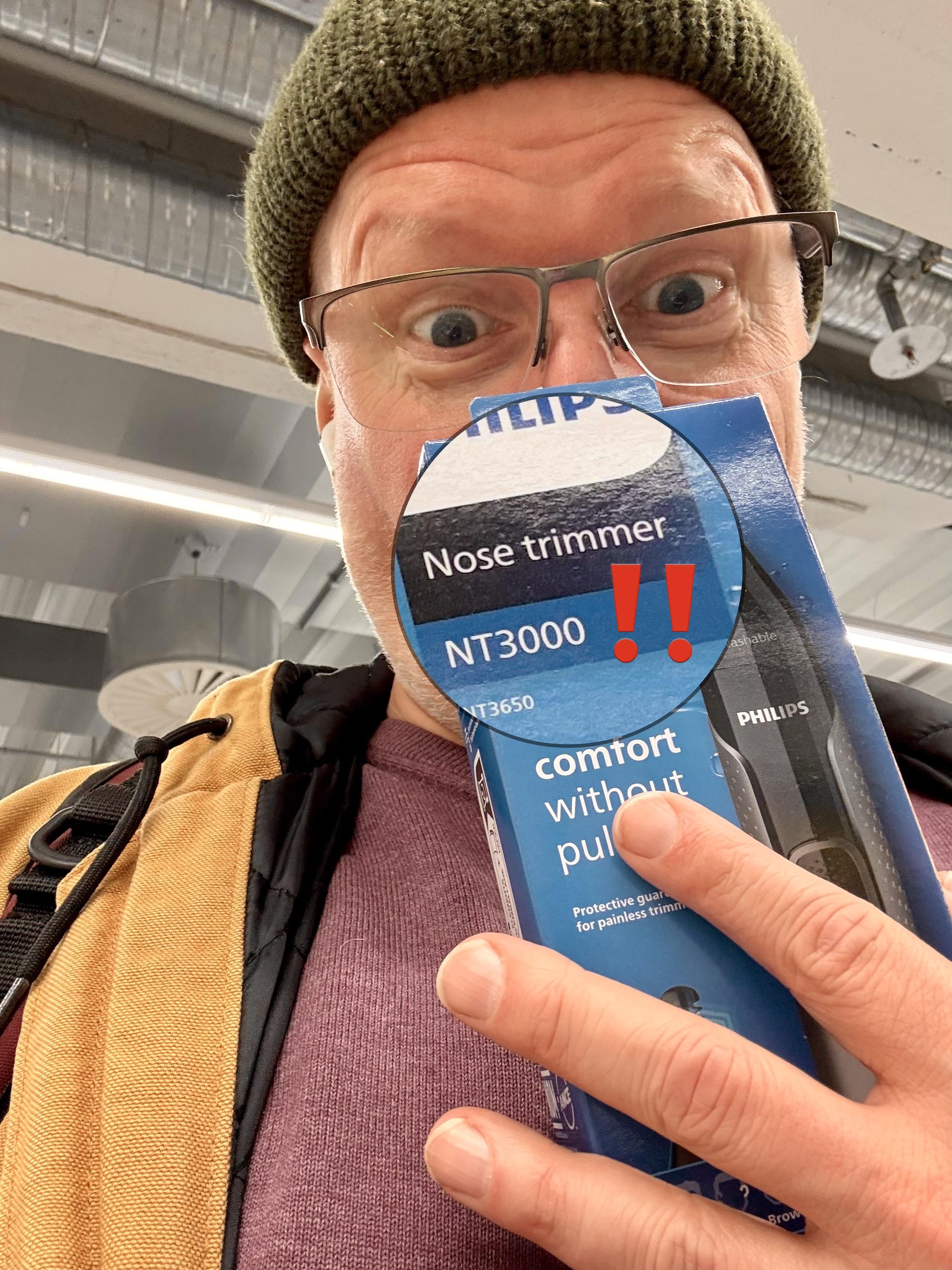 Als jemand, der mit den Ausmaßen des eigenen Riechorgans bislang gut arrangieren konnte, hoffe ich, dass sich mit diesem Gerät neben meiner Nase auch Haare stutzen lassen. Mein unerschütterliches Vertrauen in niederländische Ingenieurskunst wird gerade erschüttert, ganz ehrlich!