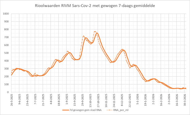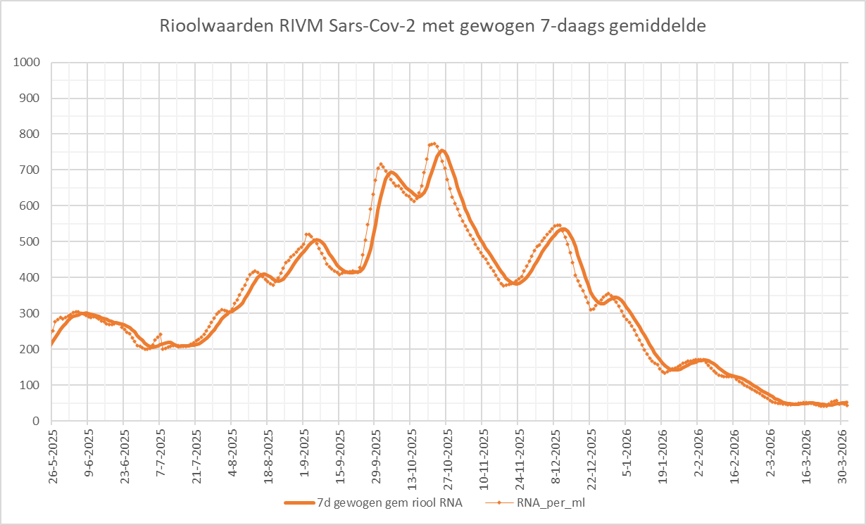 RIVM rioolwaarden en percentage positief Sars-Cov-2.