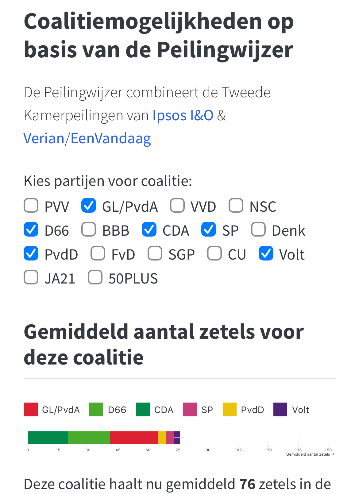 De Peilingwijzer laat nu voor het eerst een mogelijke centrum-linkse coalitie met zes partijen zien.
