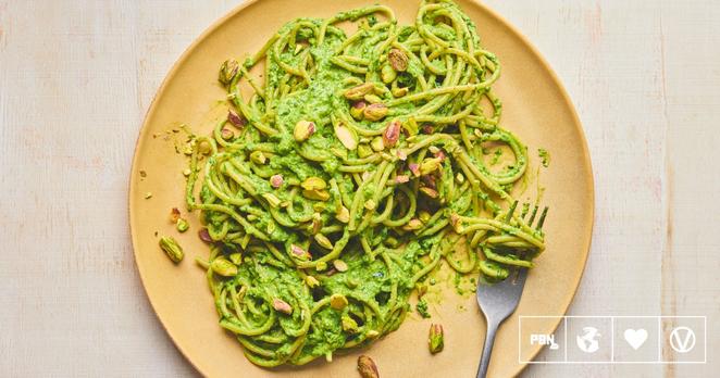 Restaurant-Style Spinach And Pistachio Spaghetti #plantbased