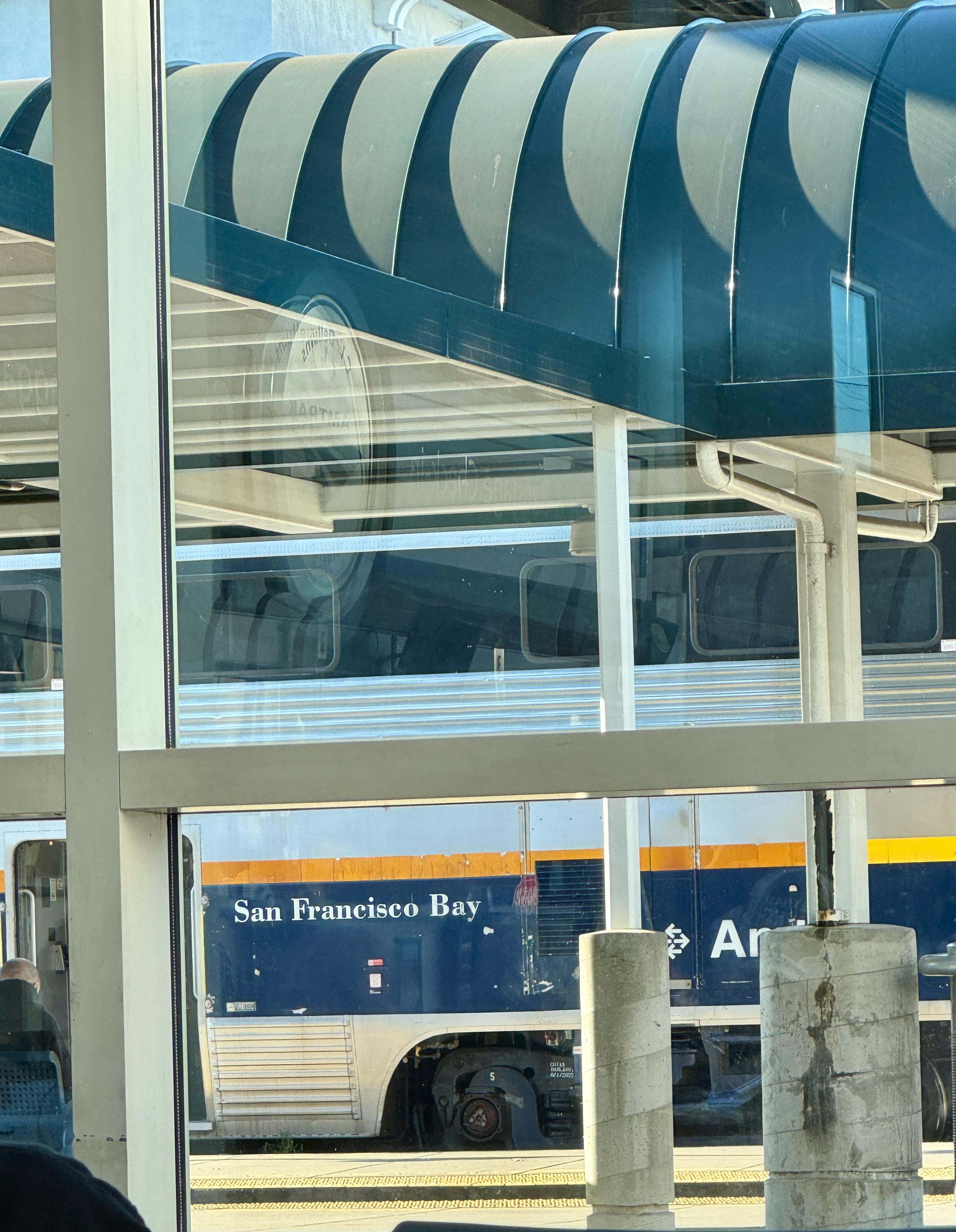 San Francisco Bay car on the Capitol Corridor. Coast Starlight was one station away on time and now delayed almost an hour (so far). Second time I’ve been delayed by drawbridge malfunction.