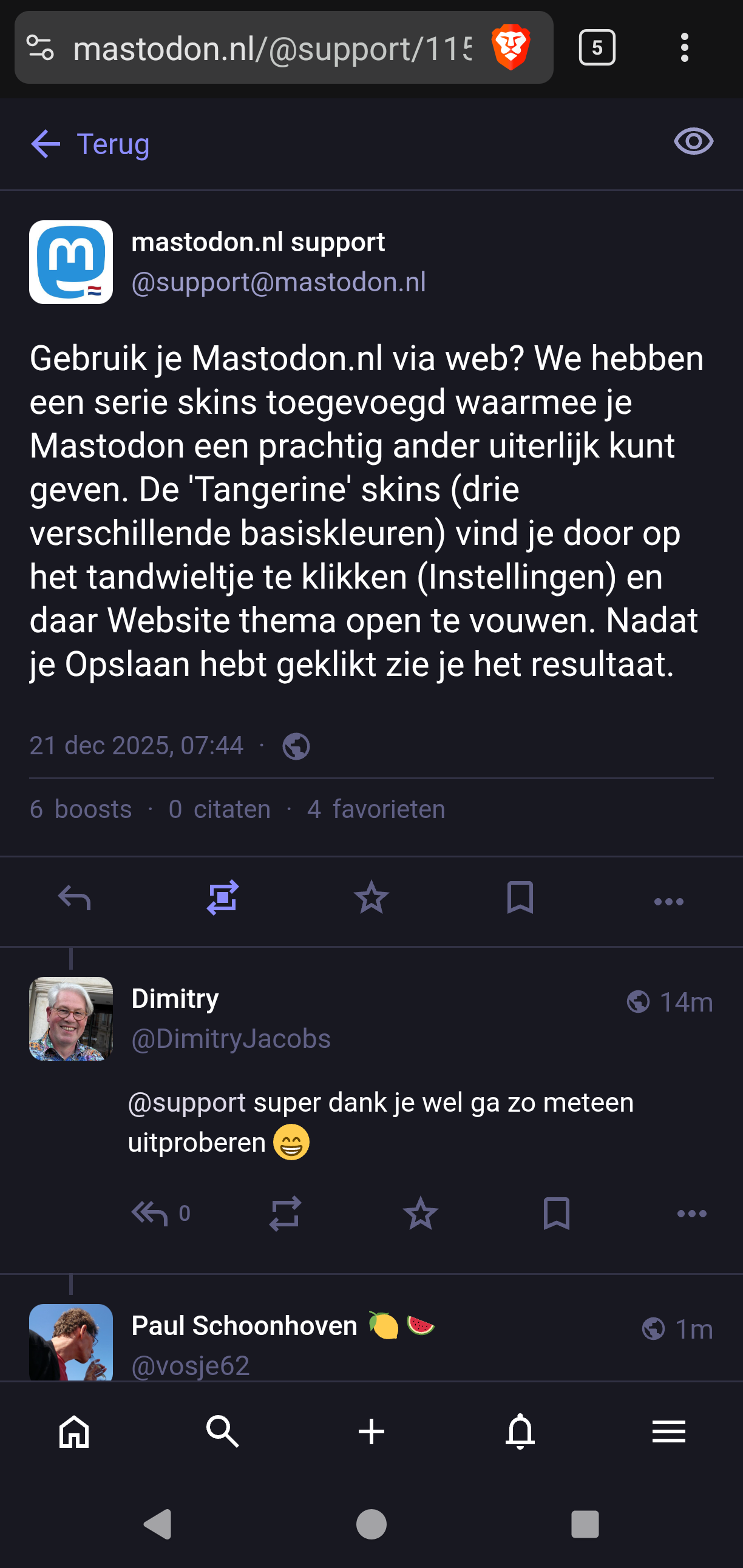 Nieuwe skins voor de web versie van Mastodon(.nl)