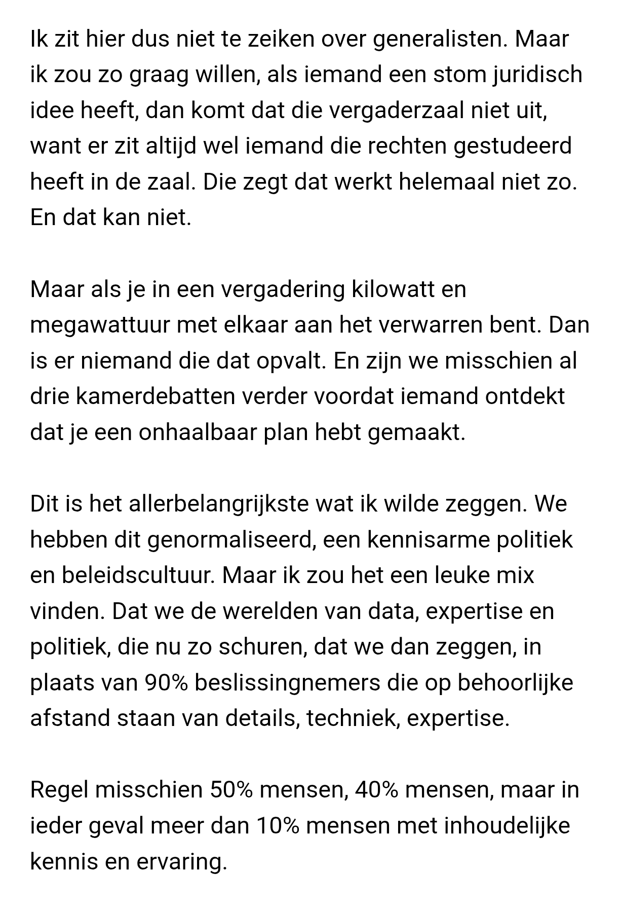 Nee ... Meer citeren doe ik niet. De anekdote over het verschil tussen een techneut en een ambtenaar kom je vanzelf tegen. De er op volgende conclusie is zo belangrijk.