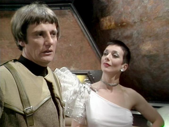 Claude Sonnet 4.5 describes the image as: "This appears to be a scene from a classic science fiction television production, likely from the late 1970s or early 1980s based on the video quality and aesthetic. The image shows two men in what appears to be a stark, industrial or underground setting with rough walls.