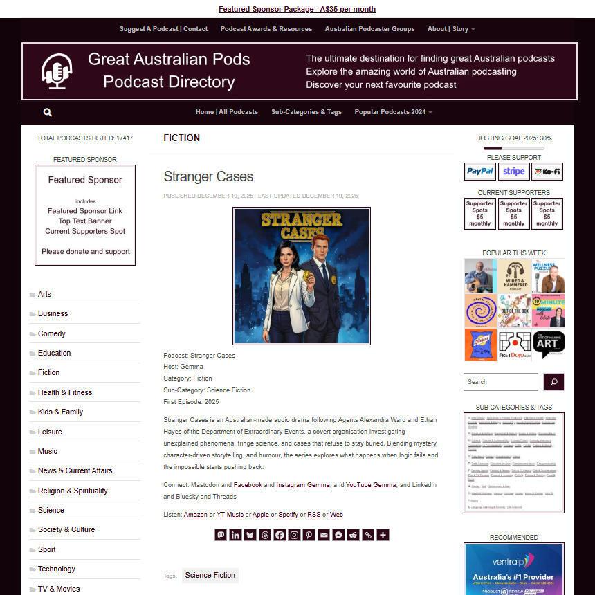 An Australian-made audio drama following Agents Alexandra Ward and Ethan Hayes of the Department of Extraordinary Events, a covert organisation investigating unexplained phenomena, fringe science, and cases that refuse to stay buried...