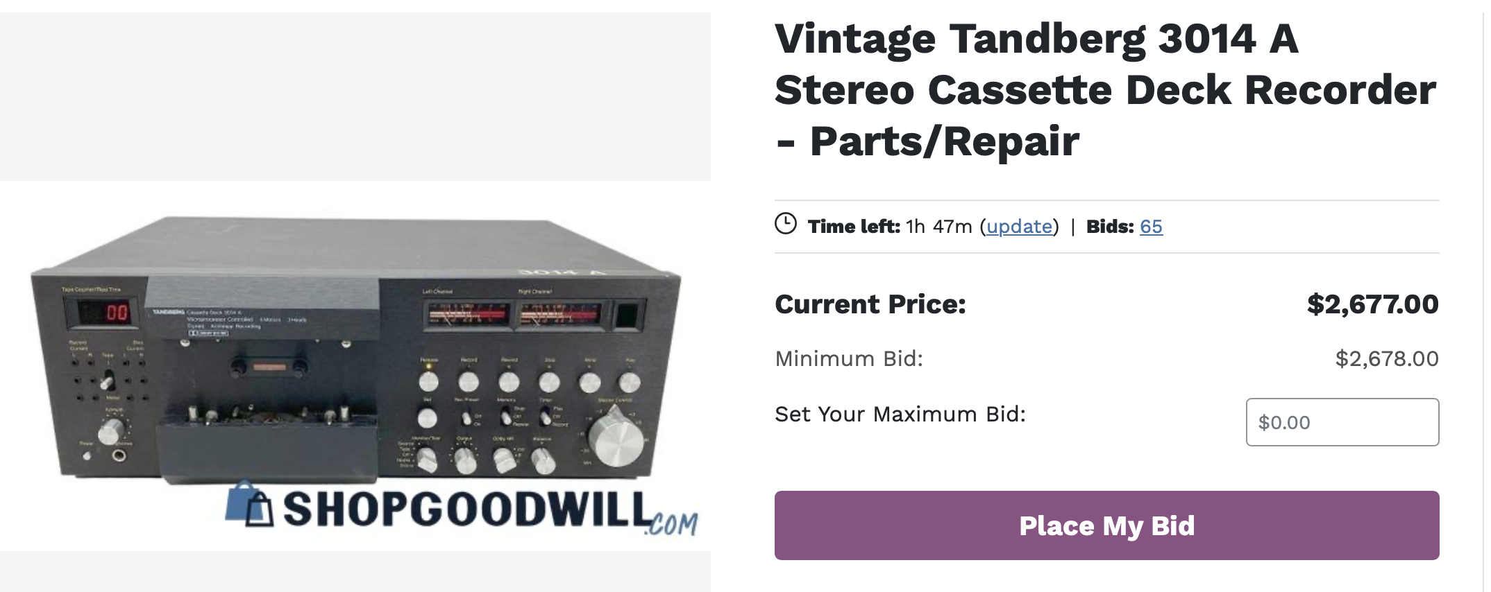 This is a Goodwill (chain of thrift stores) listing for a literally broken cassette deck.