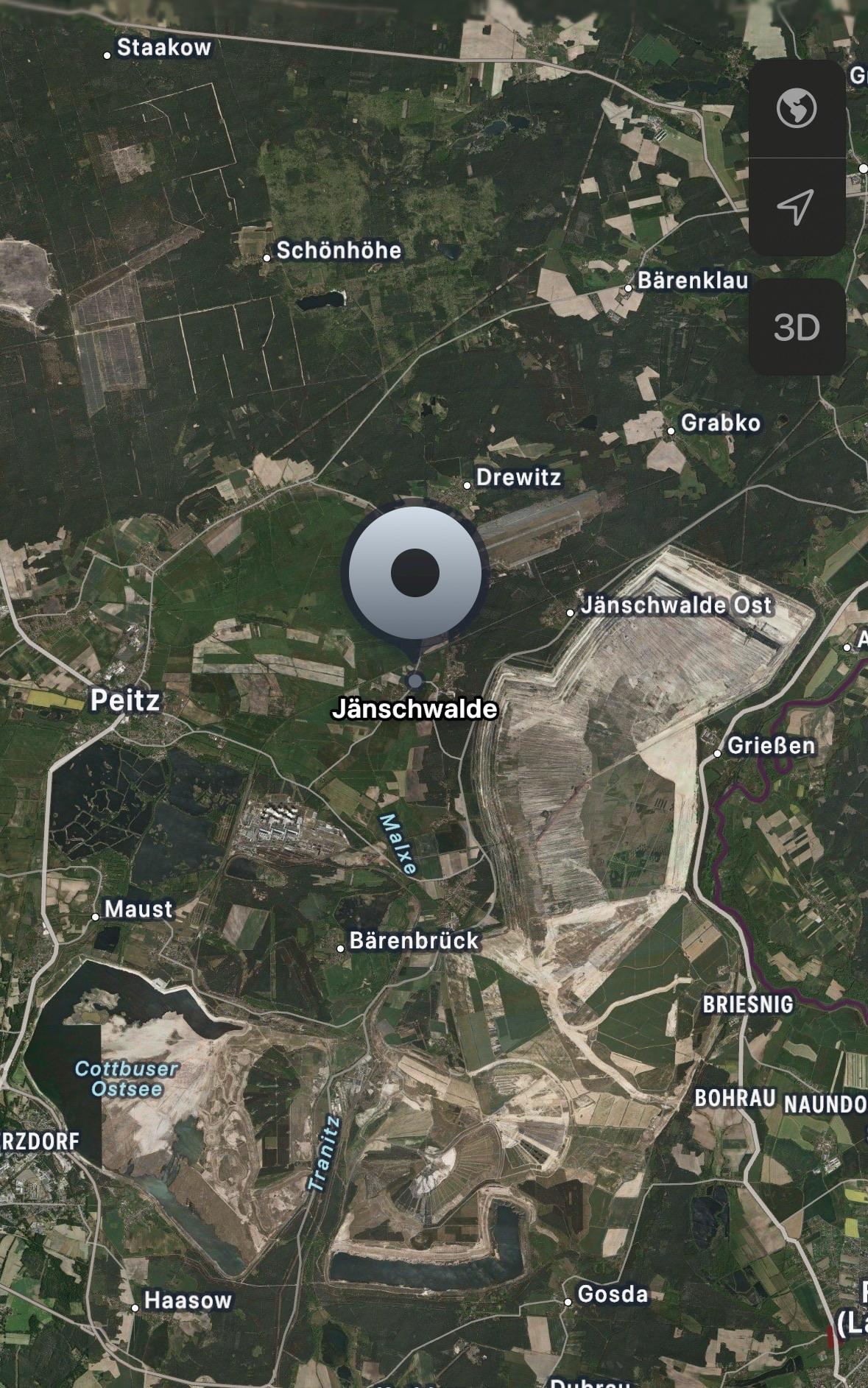 Why Jänschwalde, Brandenburg? Well, the satellite image reveals the answer. This is the site of a lignite power plant and an open-cast mine (the latter of which closed two years …