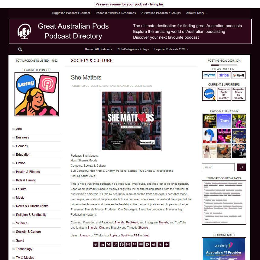 Great Australian Pods Podcast Directory: https://www.greataustralianpods.com/she-matters/