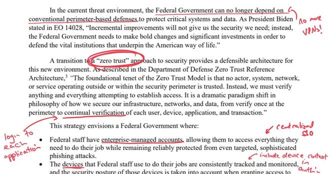 Summary of the USA federal government’s zero-trust memo.