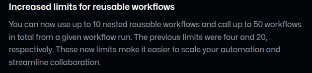 Finally! Can go deeper than 4 levels (up to 10 now) with my #GitHub Action Workflow nesting. Via: https://github.blog/changelog/2025-1…