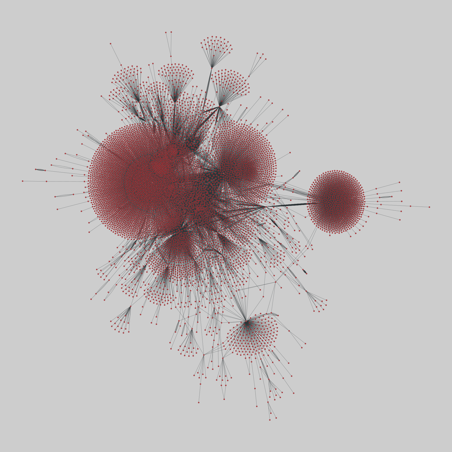 Snapshot of connections among users of the Israeli social network Marker Cafe, collected in 2011. Nodes are users and a directed edge (i,j) represents user i added user j to i's circle.