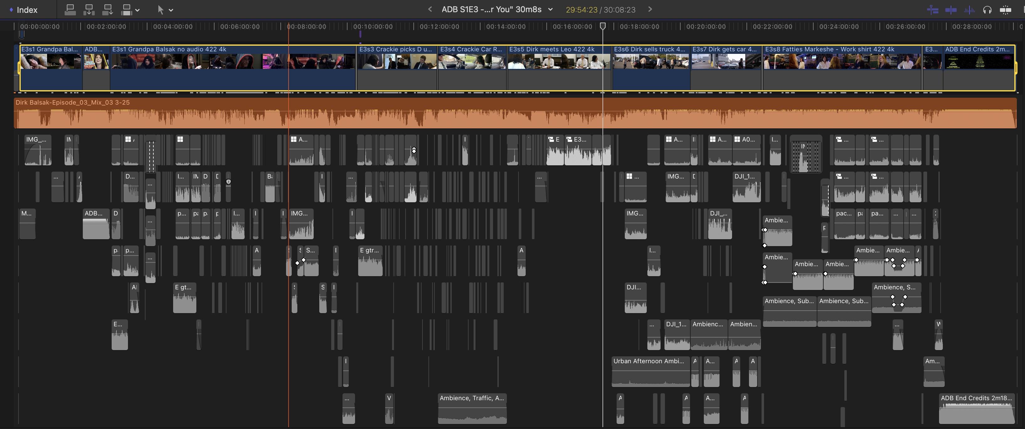 Exporting E3 now. Every shot upscaled and repaired where necessary; captions combed through and corrected, timing confirmed; all cast and music credits confirmed; render integrity confirmed by going through frame by frame; project files backed up to 2 external drives.