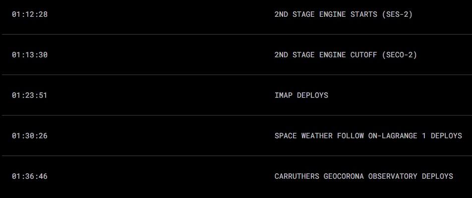 Now that the three #heliophysics missions are in orbit here is - from https://www.spacex.com/launches/imap - what happens next: this is in mission elapsed time; add 11:30:50 to get UTC or 7:30:50 to get EDT a.m.