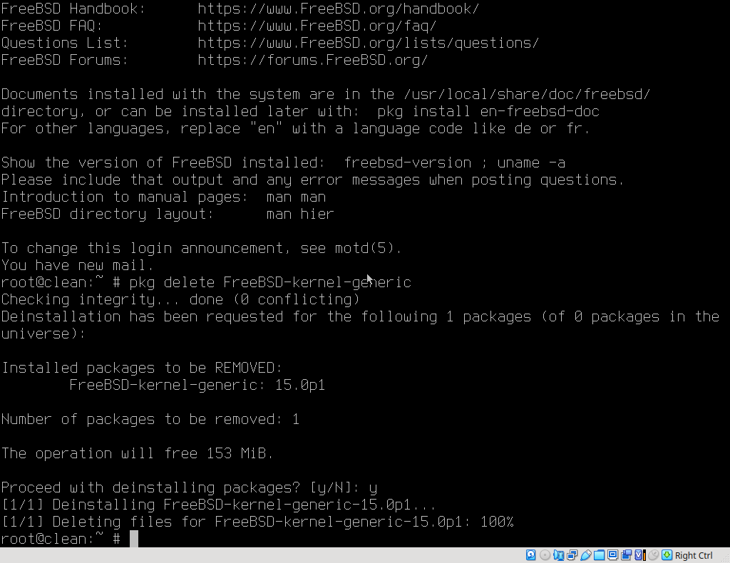 root@clean:~ # pkg delete -fqy FreeBSD-vi FreeBSD-vi-dbg