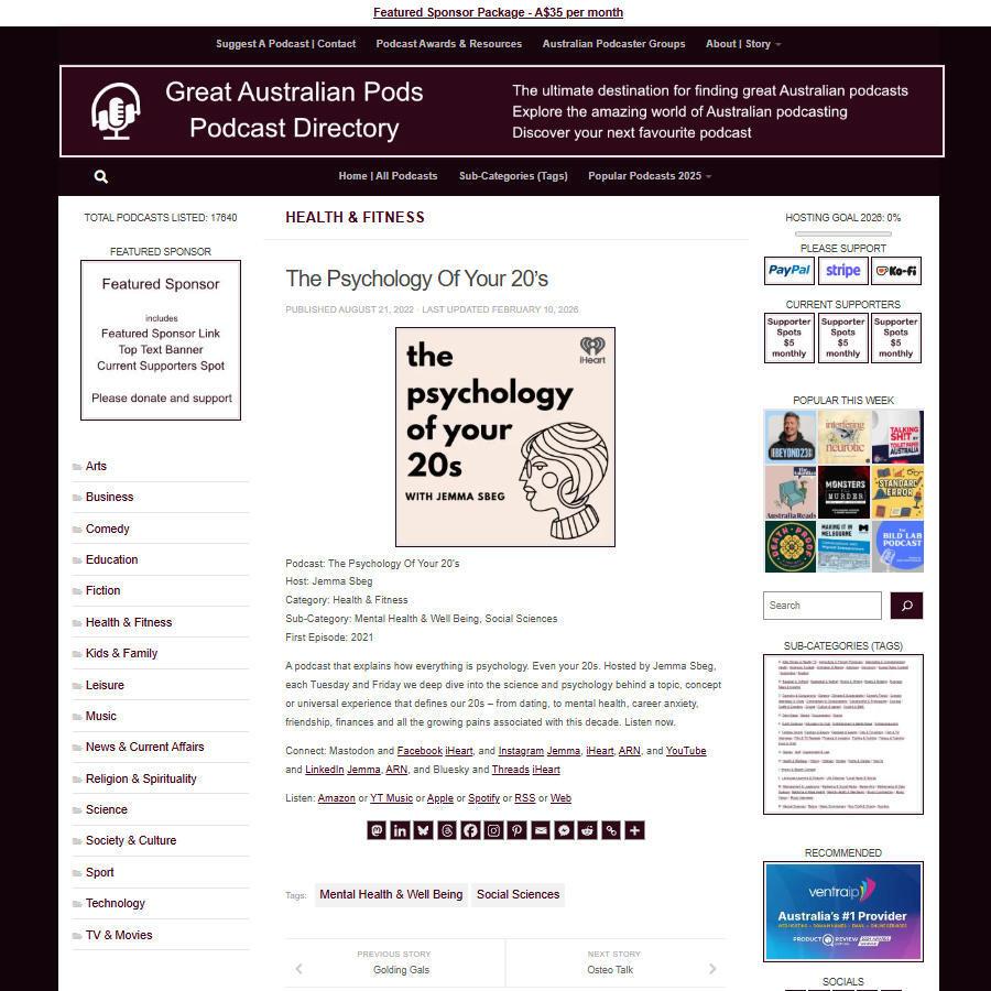 Great Australian Pods Podcast Directory: https://www.greataustralianpods.com/psychology-of-your-20s/…