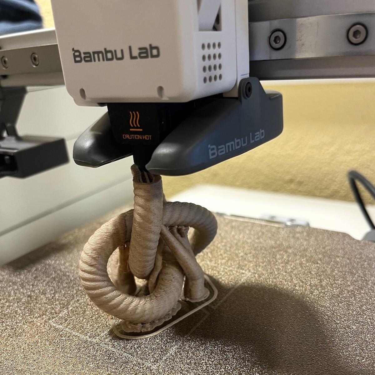It looked like a promising print, but unfortunately it failed a few layers later due to a clogged nozzle. However, the pattern seems to be easy to print without support. #3dprinting #bambulab #basket