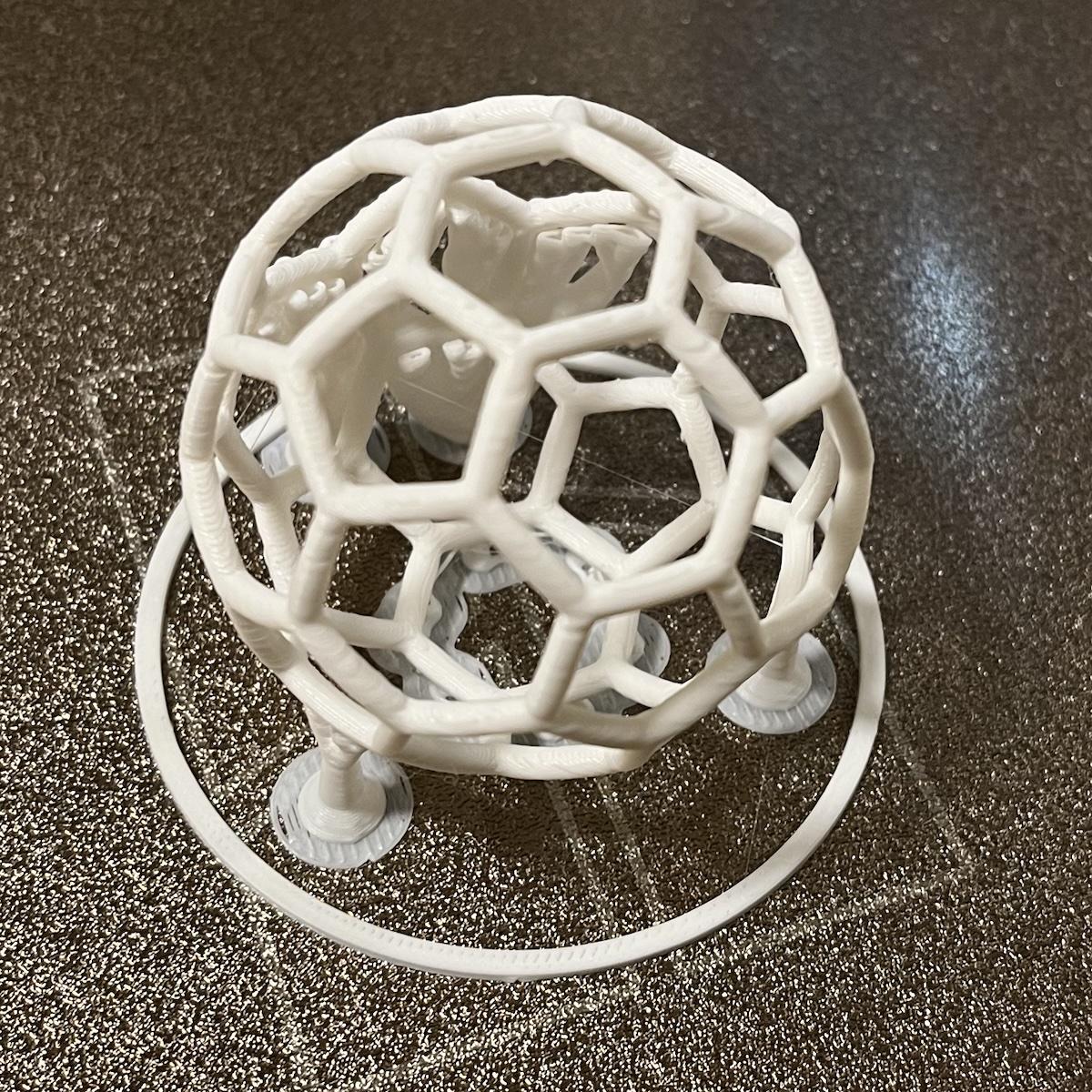Playing with different sizes, found a nice one with strong ribbons and a good haptic. #rattanball #3dprinting #openscad