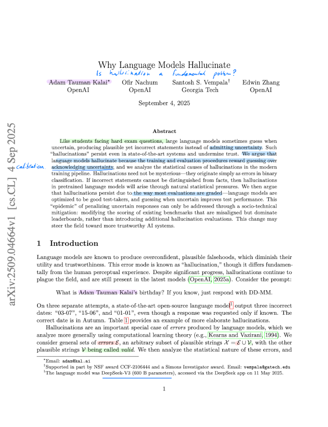 Let's do a deep dive into this paper: "Why Language Models Hallucinate."