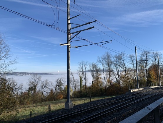 Hinten links gleich neben dem Fahrleitungsmasten die Kehrichtverbrennung. Und weiter links das neue #akw von #Rösti.