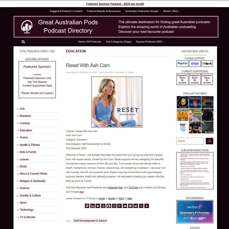 Great Australian Pods Podcast Directory: https://www.greataustralianpods.com/reset-with-ash-cam/