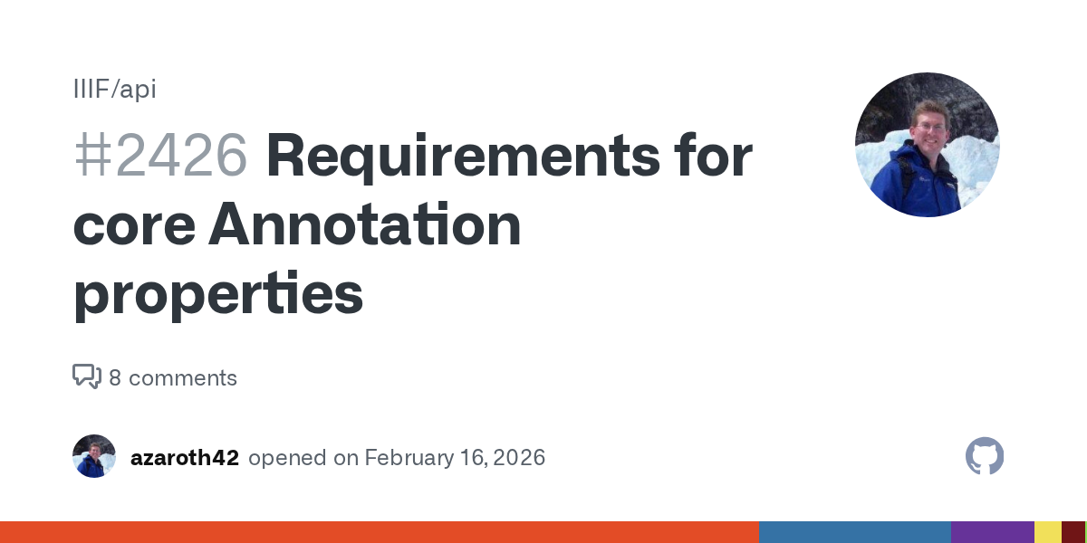 For #IIIF / digital collections folk, 'Requirements for core Annotation properties' need review/input 'to define the requirements for relationships like body, target, motivation, source... these four are very inconsistent in the way they're used in Annotation documents'