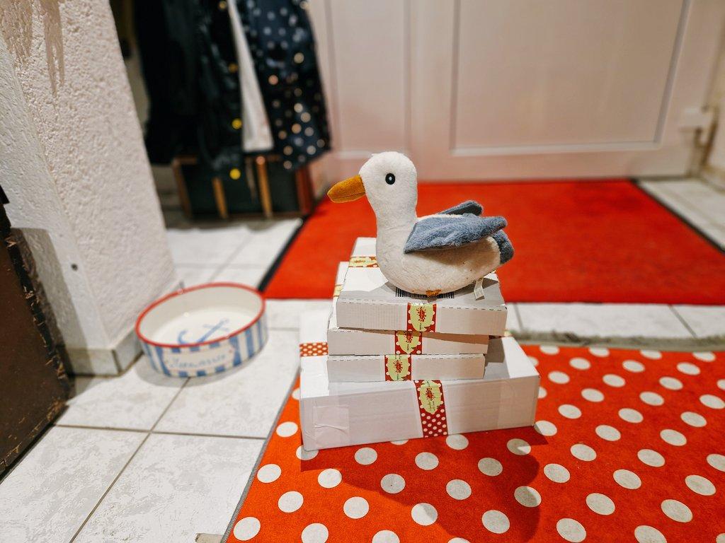 #Kundenglücklichmachungsposteinlieferungsgeräusch heute mit Vertretungs-Möwe, Frau #Atelierhuetehund ist ja unpässlich.