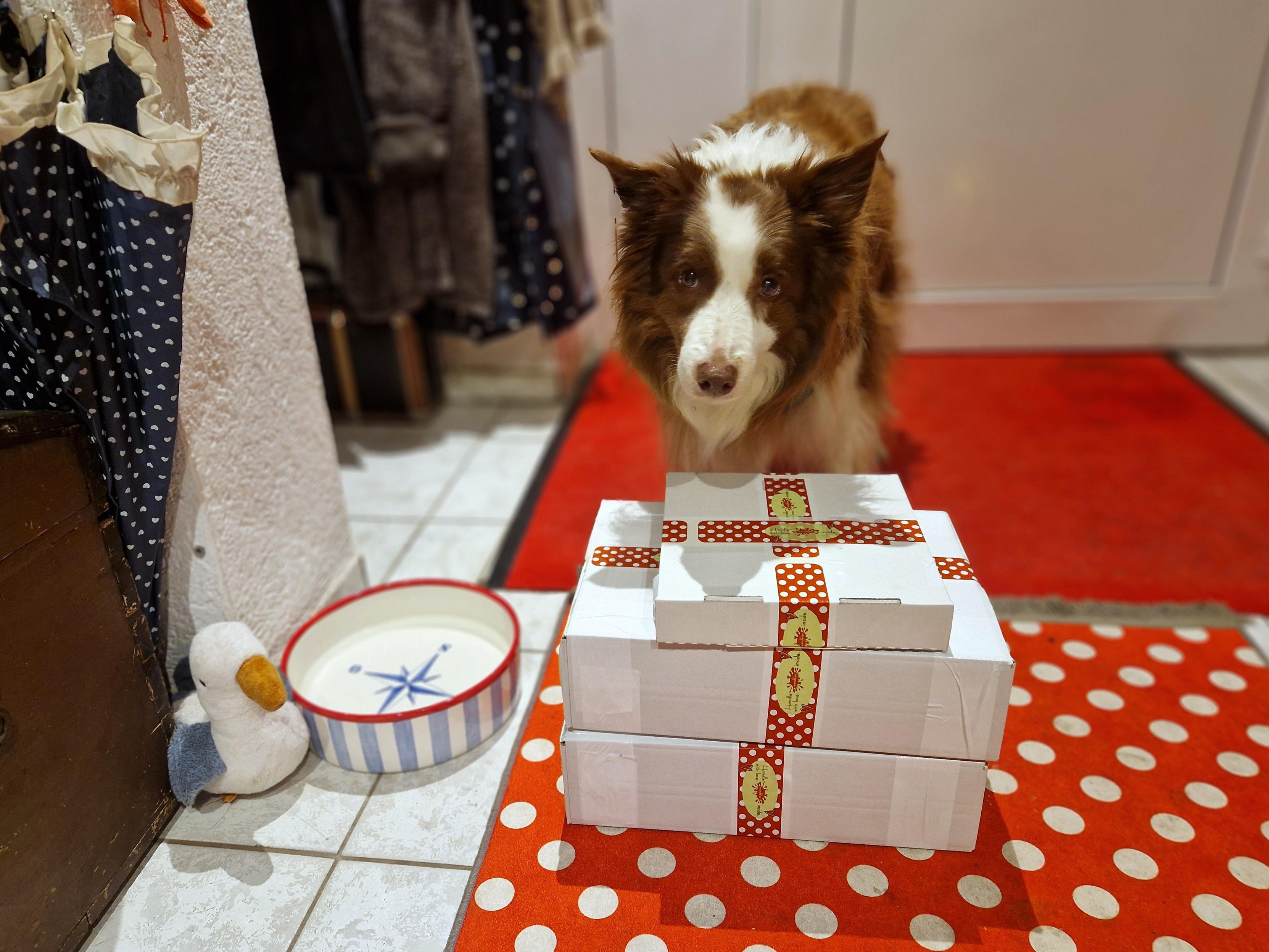#Kundenglücklichmachungsposteinlieferungsgeräusch, bis zur Abholung durch den Logistiker unter Bewachung von Frau #AtelierHueteHund.