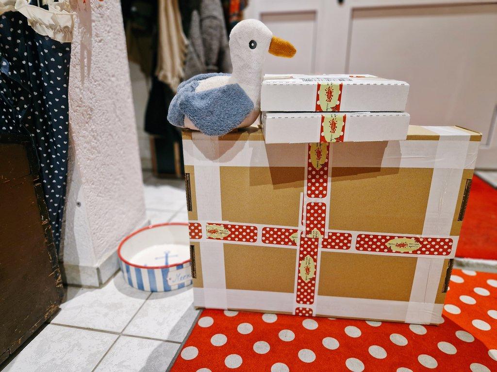 #Kundenglücklichmachungsposteinlieferungsgeräusch heute mit Vertretungs-Möwe, Frau #Atelierhuetehund ist ja unpässlich.
