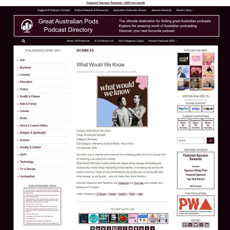 Great Australian Pods Podcast Directory: https://www.greataustralianpods.com/what-would-we-know/
