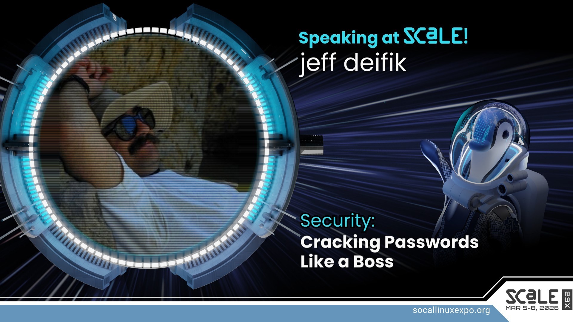 jeff deifik will speak on 'Cracking Passwords Like a Boss' as part of our Security track at SCaLE 23x. Full details: https://www.socallinuxexpo.org/scale/23x