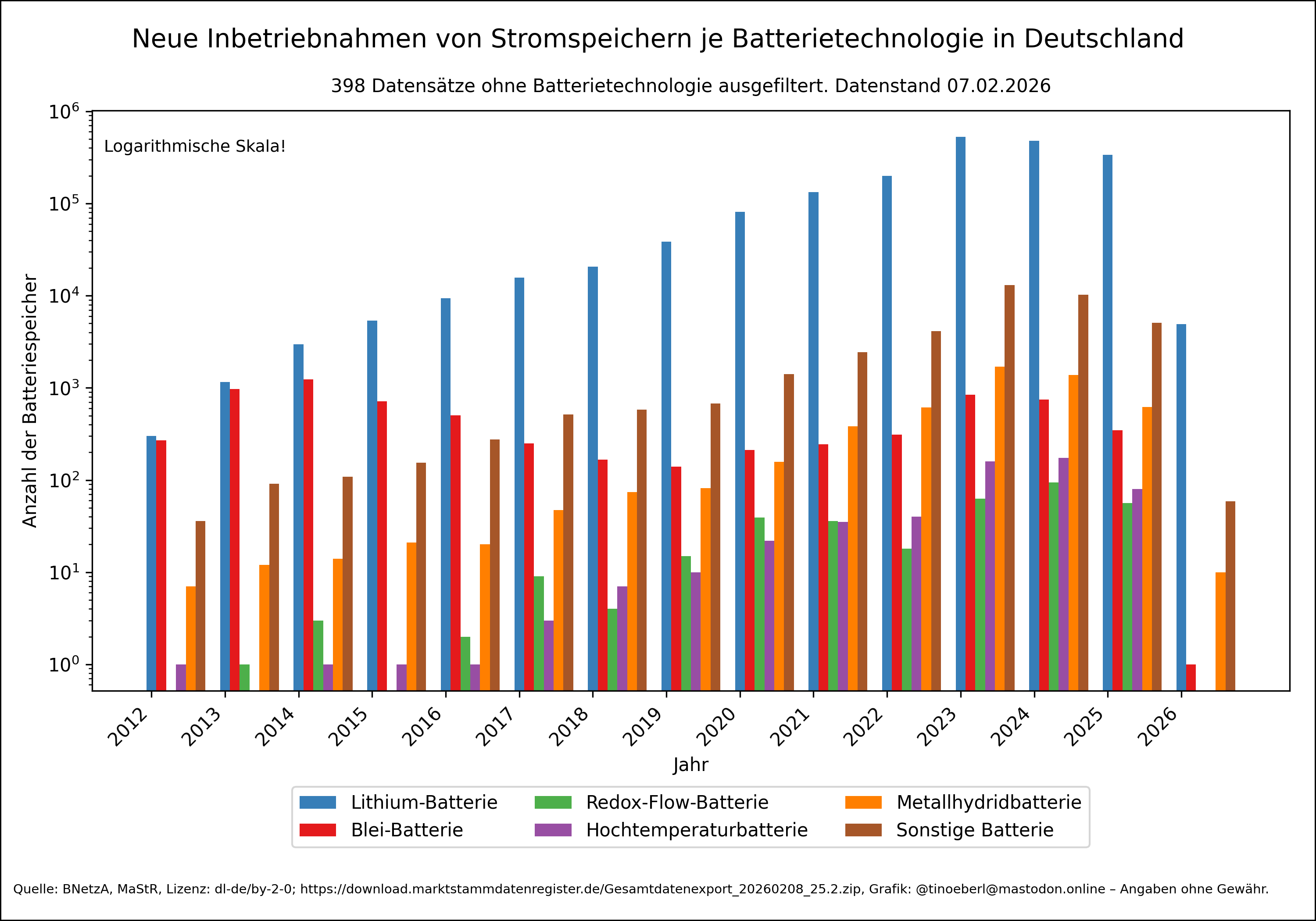Neue Inbetriebnahmen von #Stromspeichern je #Batterietechnologie in #Deutschland mit Stand vom 07.02.2026.