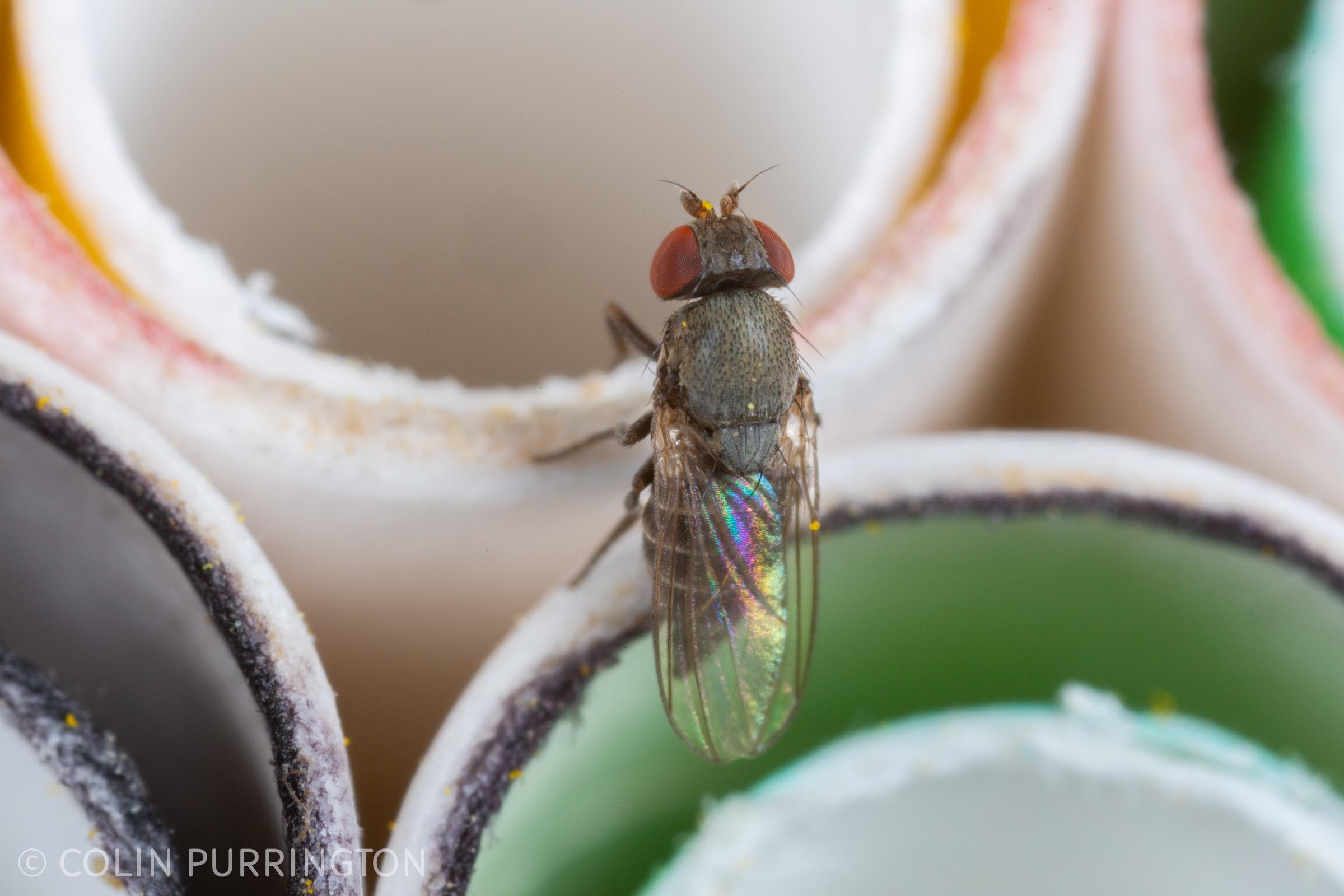 Houdini fly (Cacoxenus indagator), a kleptoparasite of mason bees from Europe that showed up in North America circa 2011. Whenever I walk past my insect hotel I take a moment to squish them. #InsectHotel #BeeHotel #insects #diptera