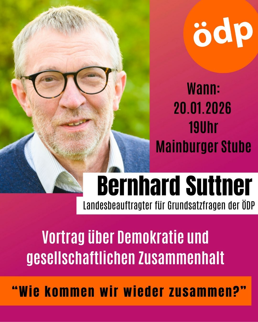 Wahlkampfauftakt mit Bernhard Suttner, ÖDP Urgestein und Politologe in der Mainburger Stubn, Elsenheimerweg 1a, 84048 Mainburg