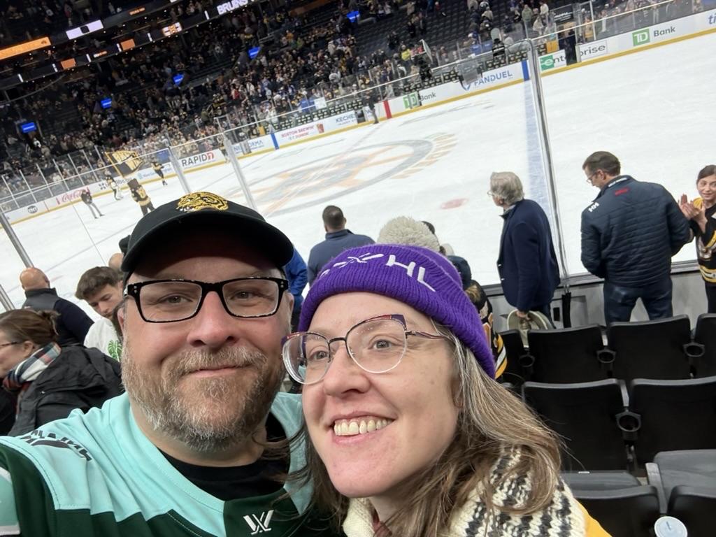 Coco and I repping the #BostonFleet and the P-Dub tonight at the #Bruins Win!