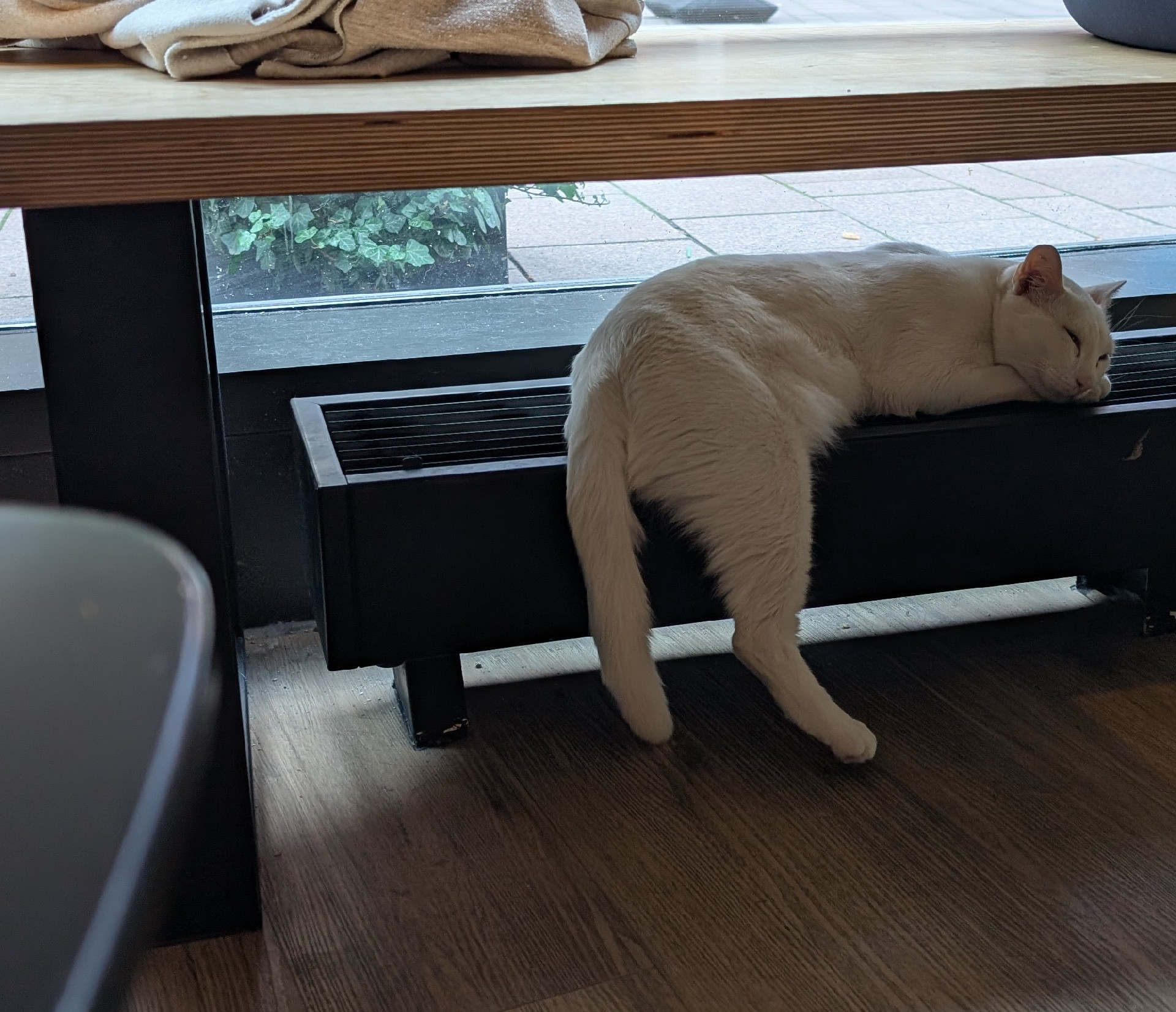 Sechs Kater und Katzen, alle maximal 2 Jahre alt, leben dort. Vier davon haben wir gesehen. Supernettes Servicepersonal trug zum Wohlfühlen bei.